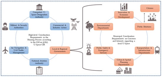 Local governments may be enquired to represent their stakes in the hearing. As depicted in Figure 1 this presents an external coordination and harmonization challenge with actors such as Military and Security Authorities, the national Aviation Authority, ANSPs and CISP, as well as Industry—including USSPs and UAS operators. Likewise, internal coordination may be required between various local-level stakeholders representing urban development, safety and security, economy, transportation, environment, and civil society.