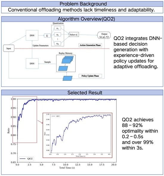 - Novel QO2 Algorithm with PPS Strategy: We design the QO2 algorithm, which leverages DNN-based learning to generate binary offloading decisions in real-time, eliminating the computational burden of traditional MINLP solvers. In addition, we design the PPS strategy, which leverages historical optimization patterns to enhance algorithmic robustness across varying environmental conditions.