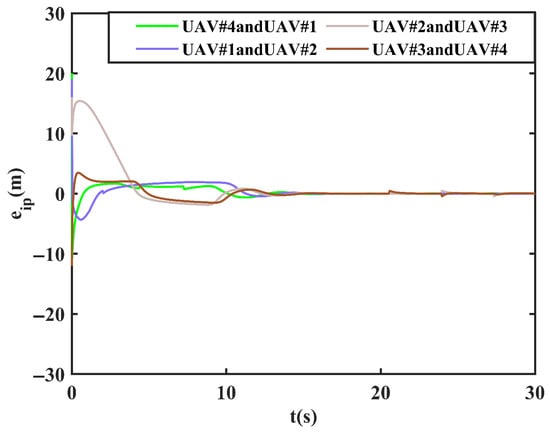 Since is bounded and , it follows from (43) that is a sufficiently small quantity. If the UAV trigger time is close to the present moment, then holds, where is a positive constant. It follows that and , where is a non-negative constant. The lower bound of the trigger interval is determined by (46), so confirming Theorem 1. According to the definition of the event-triggering criterion, it is obvious that the designed event-triggered control scheme can effectively avoid the occurrence of Zeno behavior.