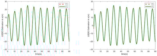 In order to estimate the system disturbances caused by external wind disturbances, USDE is introduced in the above-designed heading and speed controllers, respectively, with the following design rules: The derivative of the unknown term is bounded, i.e., , where is a nonnegative constant. To estimate , apply low-pass filtering operations to , and , described as follows: