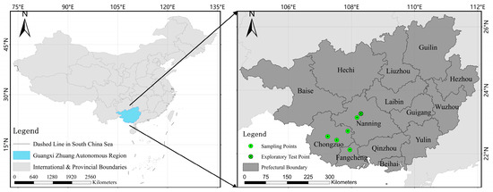| 5 | Laituan Town, Jiangzhou District, Chongzuo | 107°31′19″ E~107°32′31″ E 22°25′08″ N~22°26′13″ N | 2 | March & April 2023 | 4.41 |