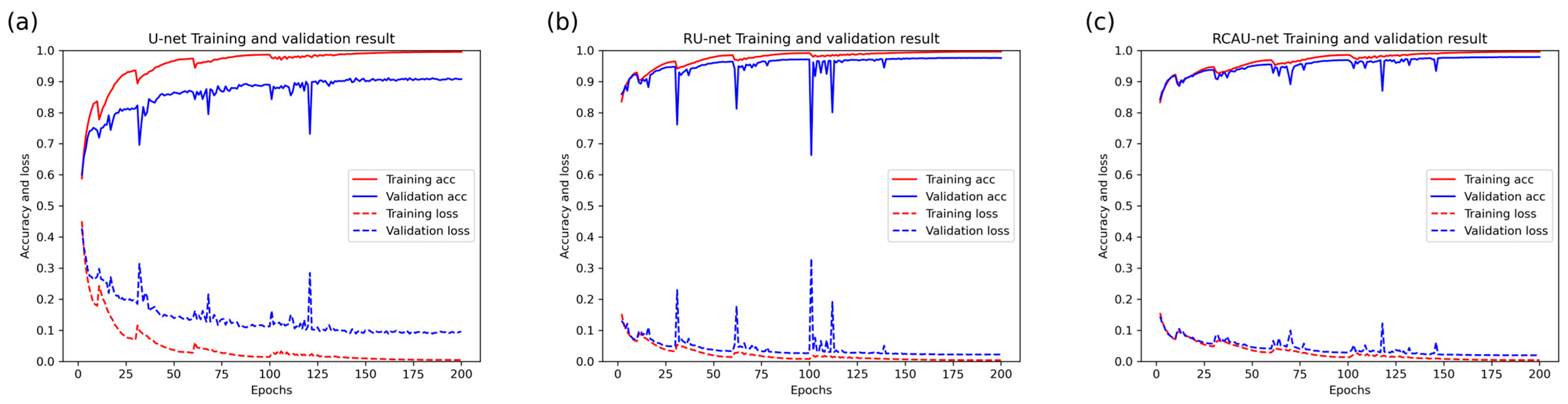 | RCAU-net | 0.9731 | 0.9719 | 0.9716 | 0.9699 | 0.9447 | 0.9419 |