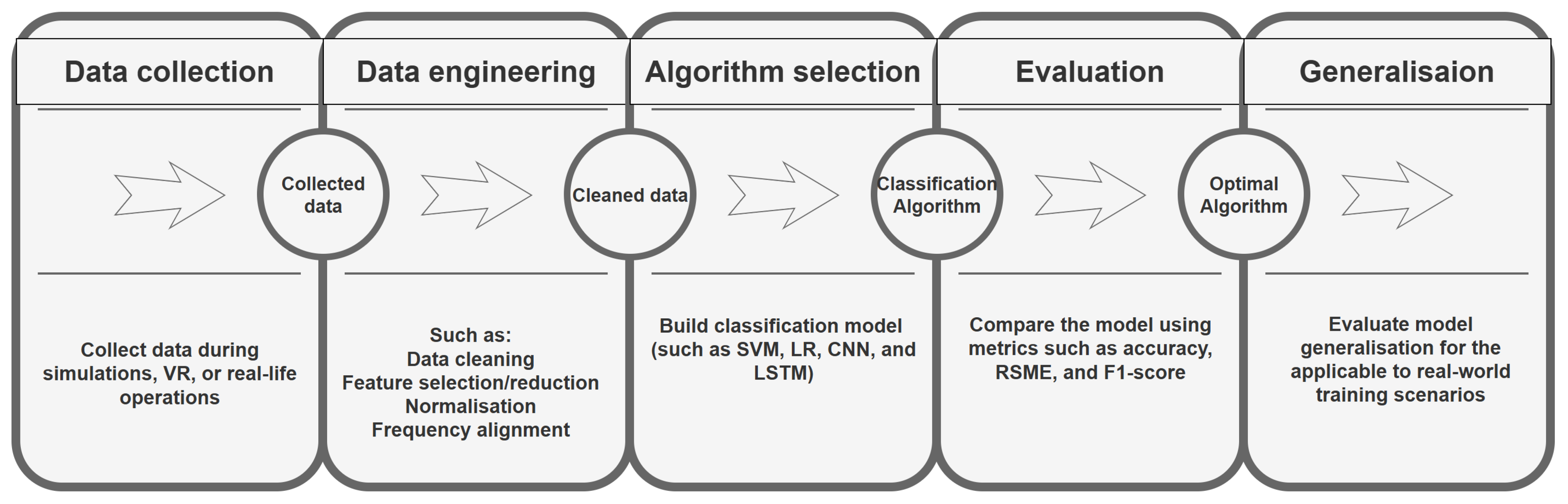 - ML-based approaches used to assess operator-related data in enhancing training.
