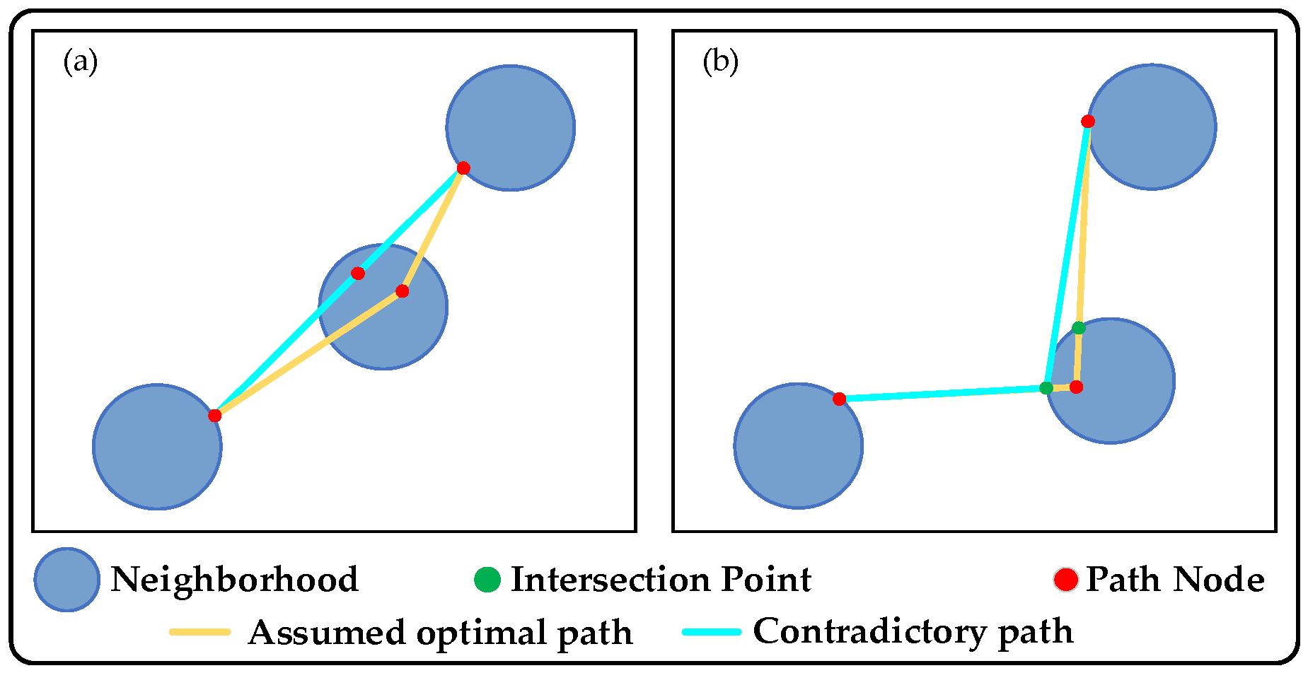 - Simplicity of computation: For convex neighborhoods, it is simple to calculate the optimal path points of the UAVs. This scenario can typically be transformed into a more straightforward geometric problem rather than a complex optimization problem, which greatly reduces computational complexity.