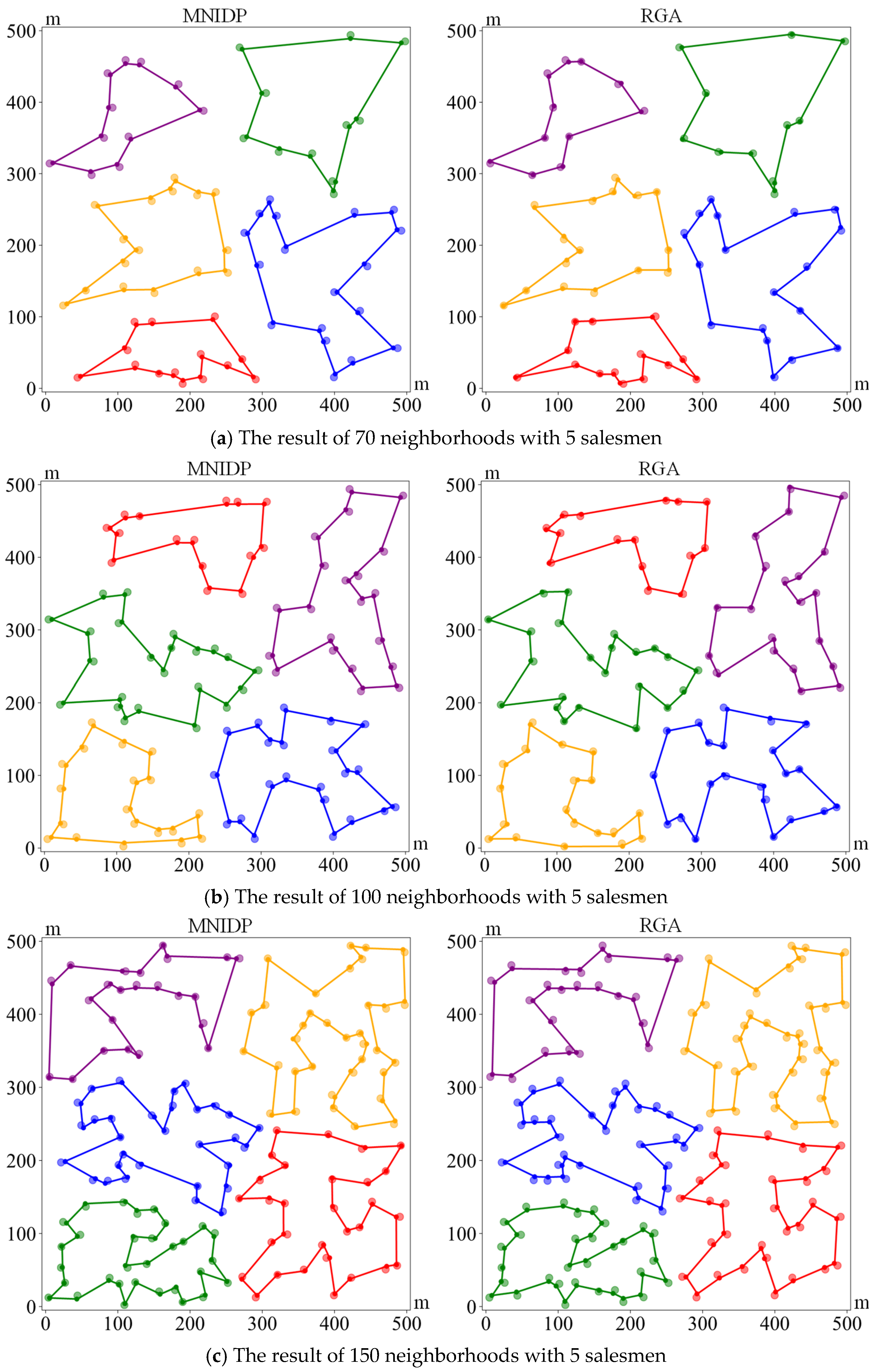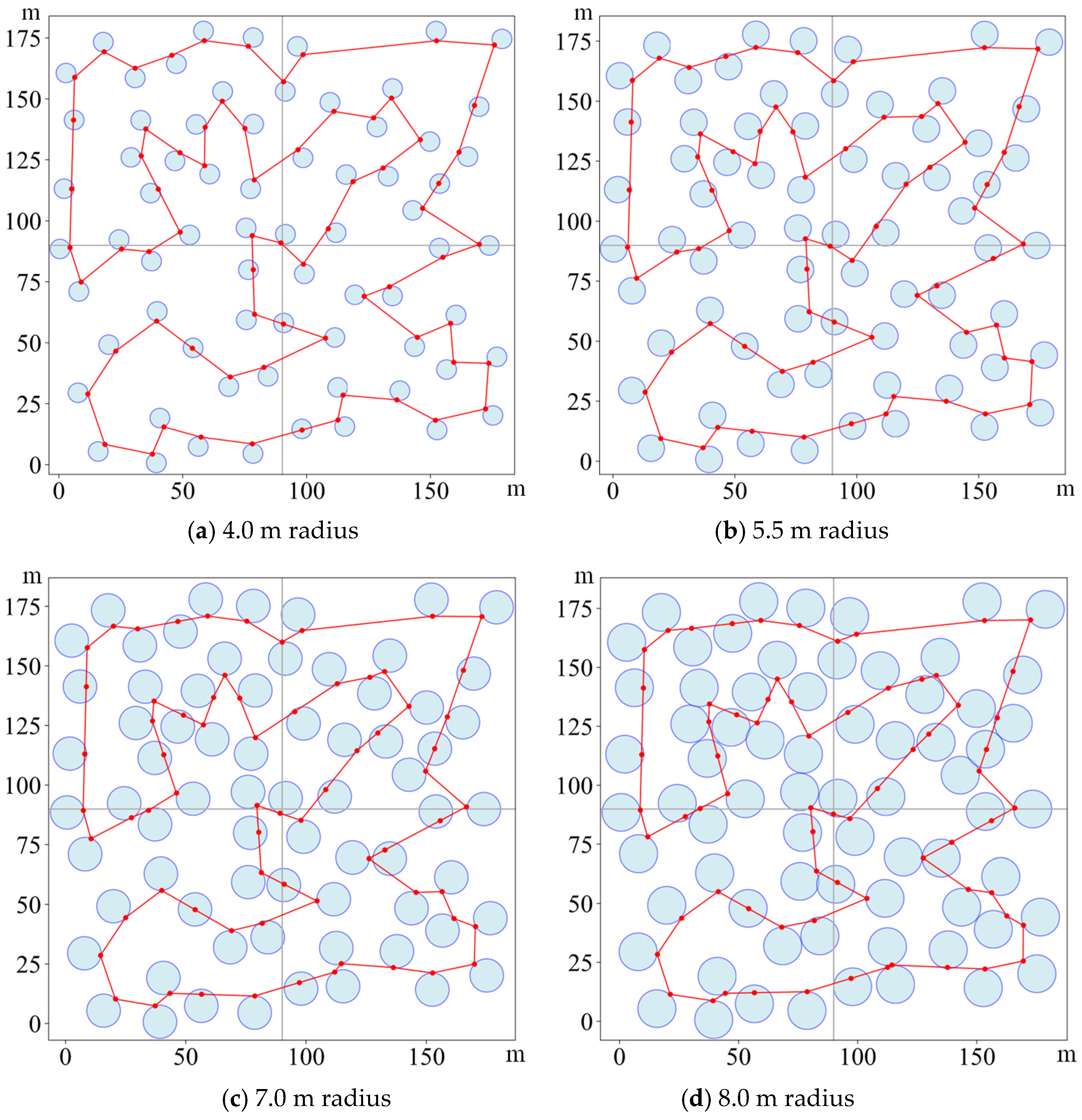 5.2.1. The MNPP Simulations with Different Neighborhood Radius Values