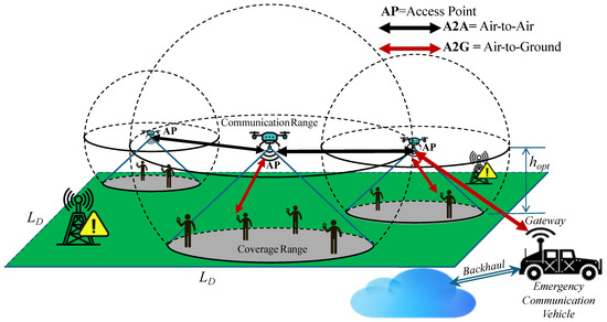 5. Gao, T.; Lang, F.; Guo, N. An Emergency Communication System Based on UAV-assisted Self-Organizing Network. In Proceedings of the 2016 10th International Conference on Innovative Mobile and Internet Services in Ubiquitous Computing (IMIS), Fukuoka, Japan, 6–8 July 2016; IEEE: New York, NY, USA, 2016; pp. 90–95. [Google Scholar] [CrossRef]