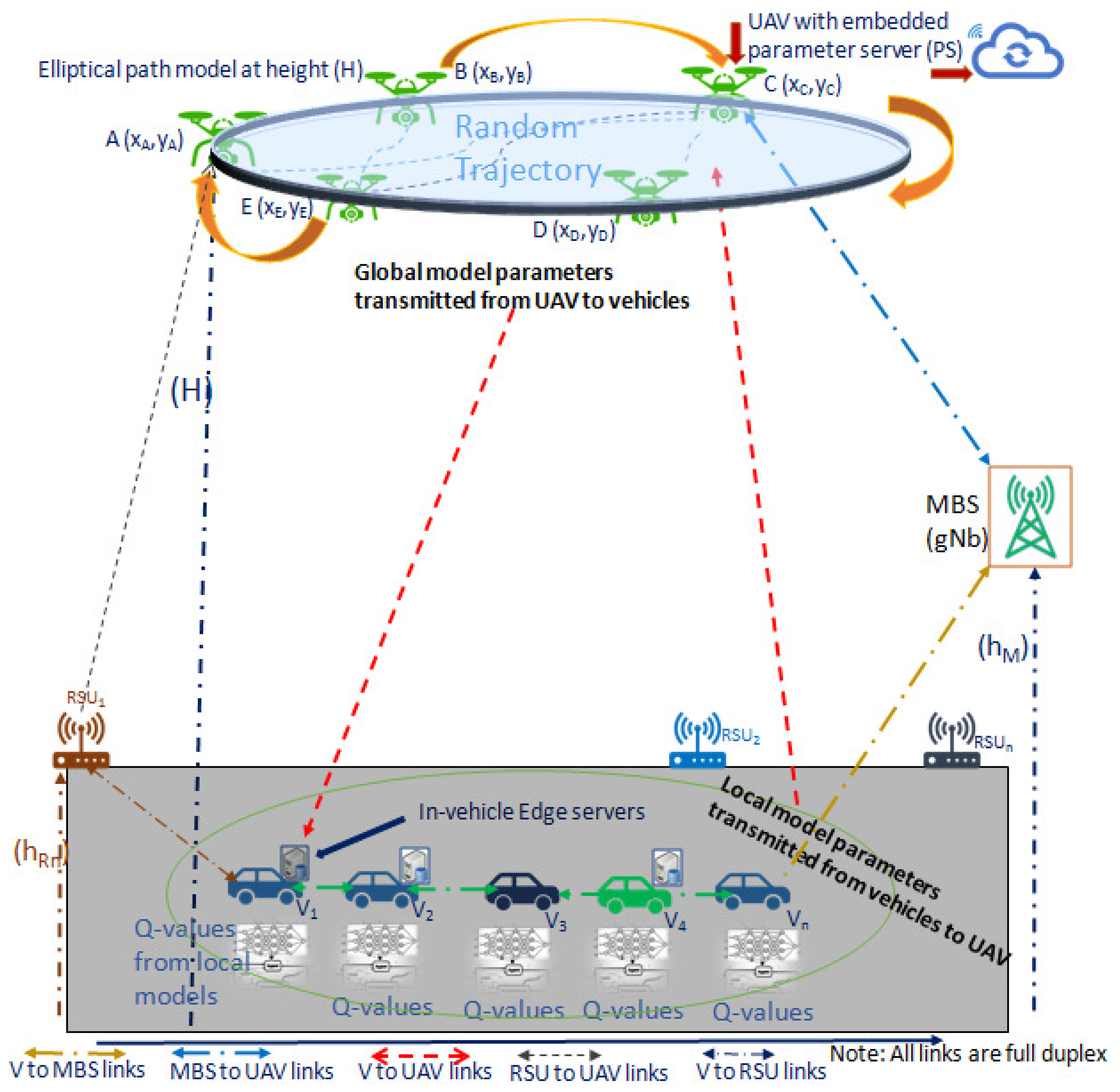 - Considering FL where non-i.i.d. sensor data are processed at the in-vehicle ES, and subsequently, only the completed model parameter updates are communicated to the UAV.