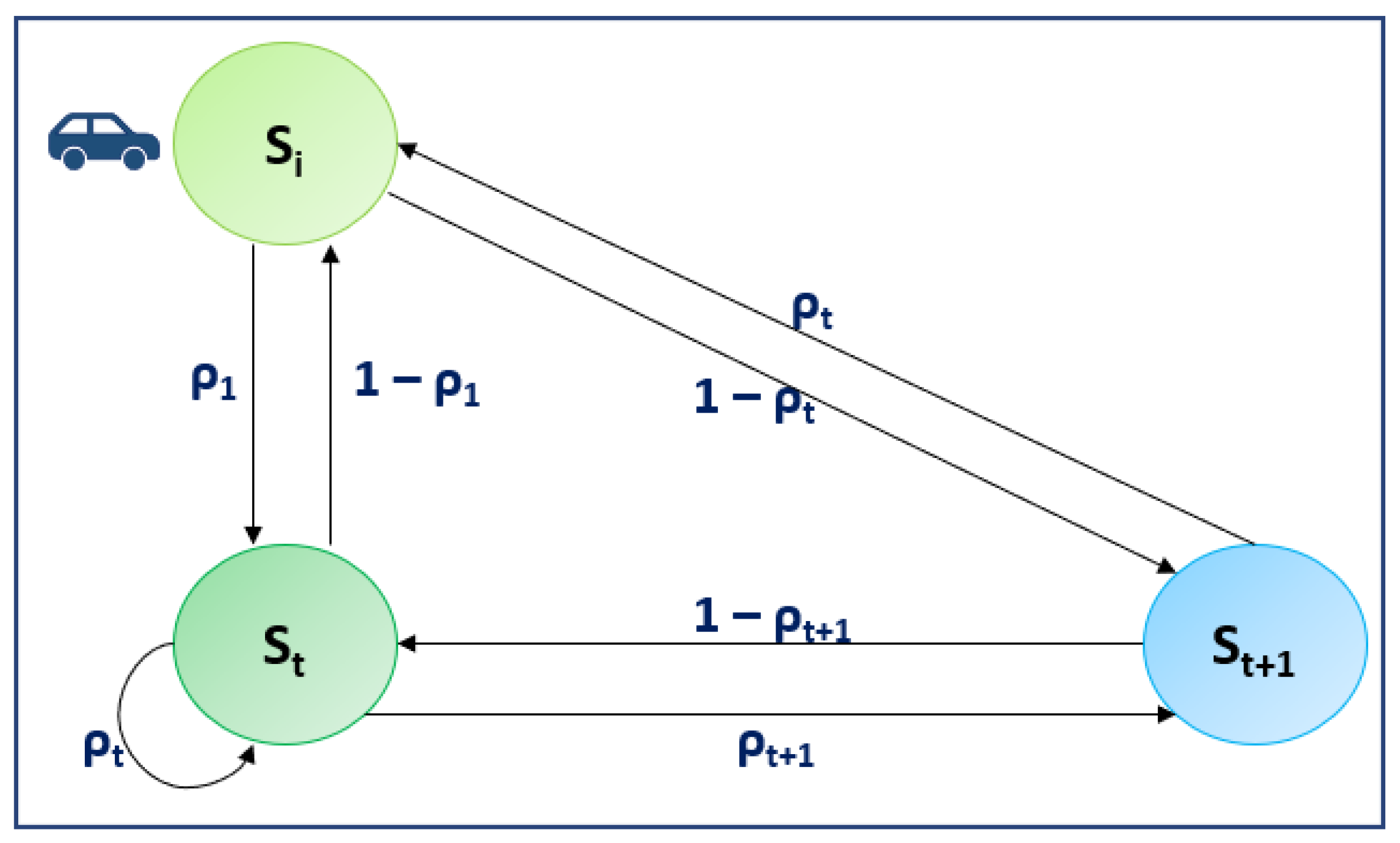 - Shinde, S.S.; Tarchi, D. A Markov Decision Process Solution for Energy-Saving Network Selection and Computation Offloading in Vehicular Networks. IEEE Trans. Veh. Technol. 2023, 72, 12031–12046. [Google Scholar] [CrossRef]