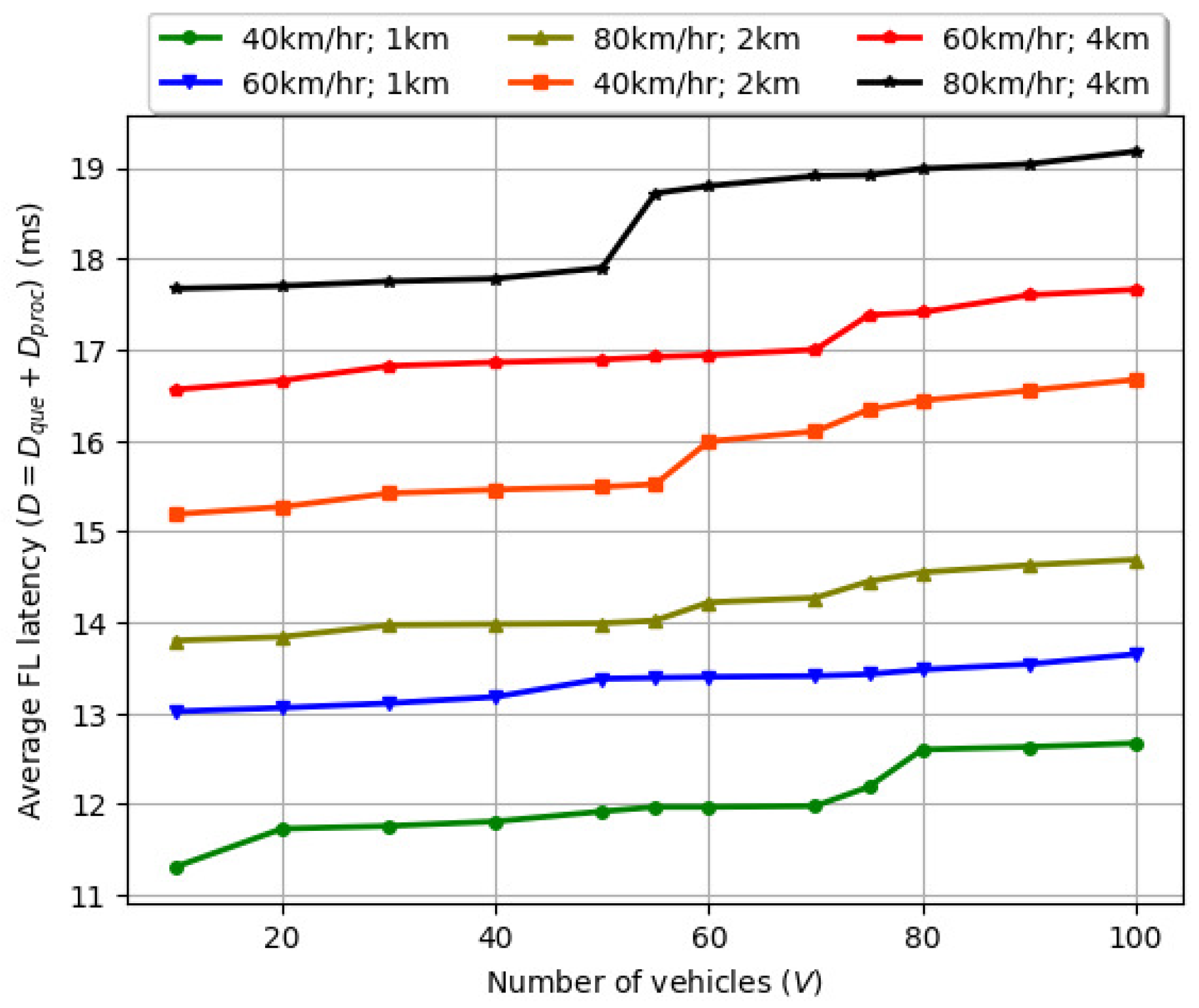 - For gross data offloading, we consider event-triggered cooperative perception messages (CPMs) and periodically transmitted basic safety messages (BSMs). The implication of the main finding is that the delay in FL scenario is less than that in the gross data offloading scenario.