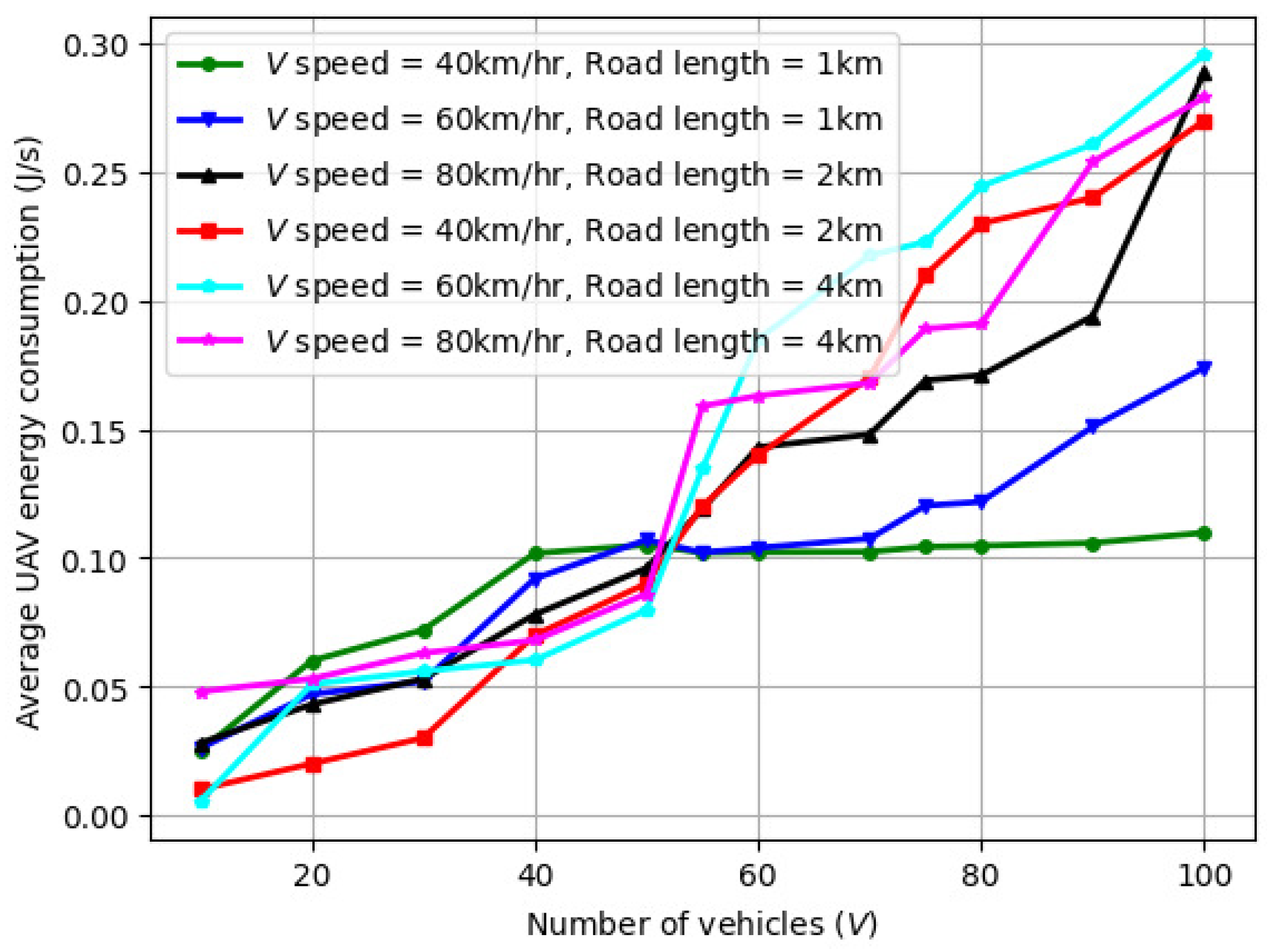 - We assess the frequency of constraint breaches as vehicle numbers rise within a realistic UAV-supported C-V2X communication framework. Consequently, we determine the optimal vehicle count that a UAV can accommodate without surpassing these constraints.