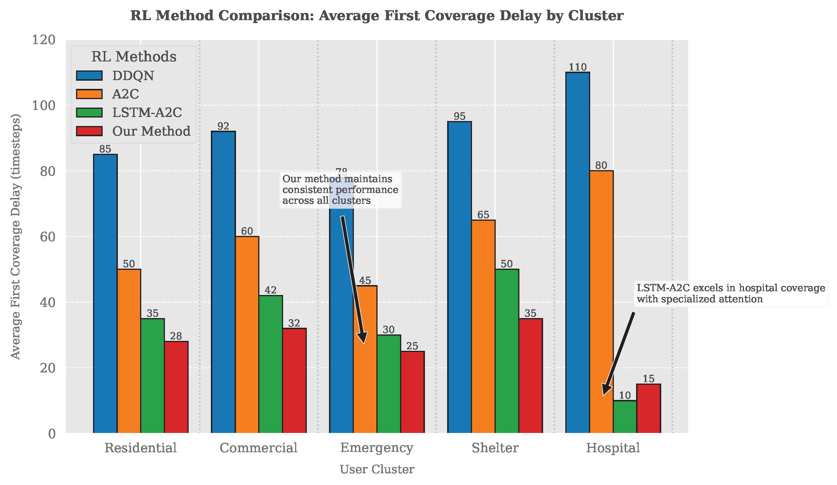 5] leverage recurrent networks for temporal dependencies, they do not jointly achieve memory-based user tracking, selective focus on unserved clusters, and equitable service in partially observable, high-dimensional environments—capabilities central to our design.
