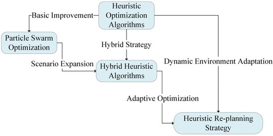 In recent research, a four-dimensional optimization balance has been emphasized, involving path accuracy, energy efficiency, temporal constraints, and robustness. These four objectives jointly define the optimization focus of heuristic approaches. Based on these principles, three major algorithmic frameworks have been developed: swarm intelligence algorithms, hybrid evolutionary algorithms, and heuristic re-planning strategies, as illustrated in Figure 2. Their improvement mechanisms, applicable conditions, and performance limitations are analyzed in the following subsections.