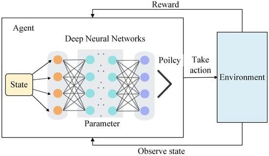 Reinforcement learning (RL) and deep learning (DL) have transformed research on AUV cluster path planning, marking a shift from model-driven to data-driven paradigms. In RL, decision policies are optimized through continuous interaction between an agent and its environment, while DL enables hierarchical extraction of high-dimensional features from complex sensory data. The integration of these two approaches forms Deep Reinforcement Learning (DRL), which combines the adaptability of RL with the representational capability of DL. Through this combination, autonomous decision-making can be achieved directly from raw sensor inputs. Since the introduction of the Deep Q-Network (DQN) by DeepMind in 2013, DRL has exhibited superior performance in robotic control and autonomous navigation. In the context of AUV clusters, it has been recognized as an effective approach for addressing dynamic, multi-task environments characterized by uncertainty, communication delay, and real-time decision constraints. The general structure of a DRL-based AUV path planning framework is shown in Figure 6.