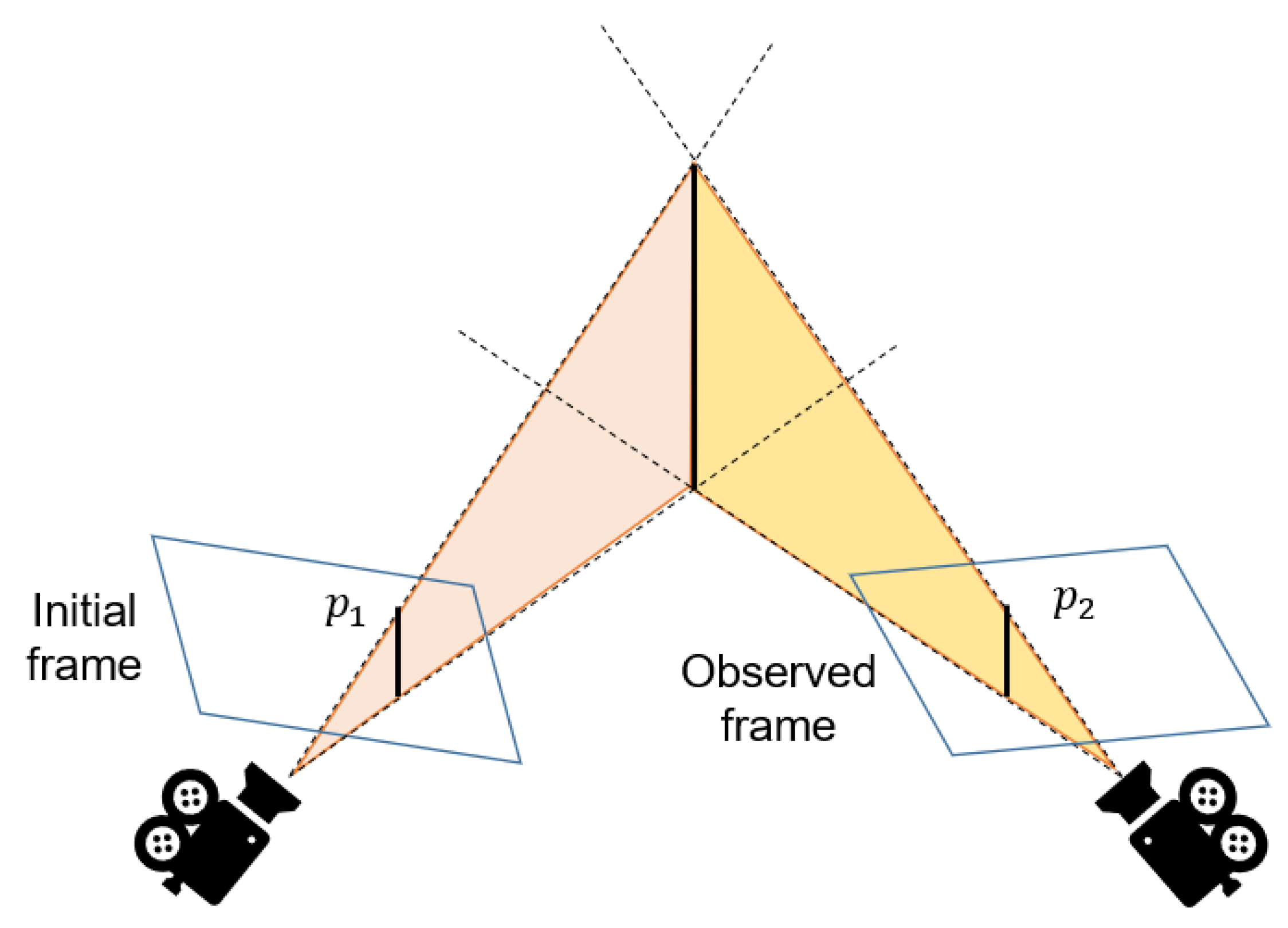 Figure 3. Schematic diagram of the line feature triangulation principle. Through this operation, the positions of feature line segments in 3D space can be obtained.