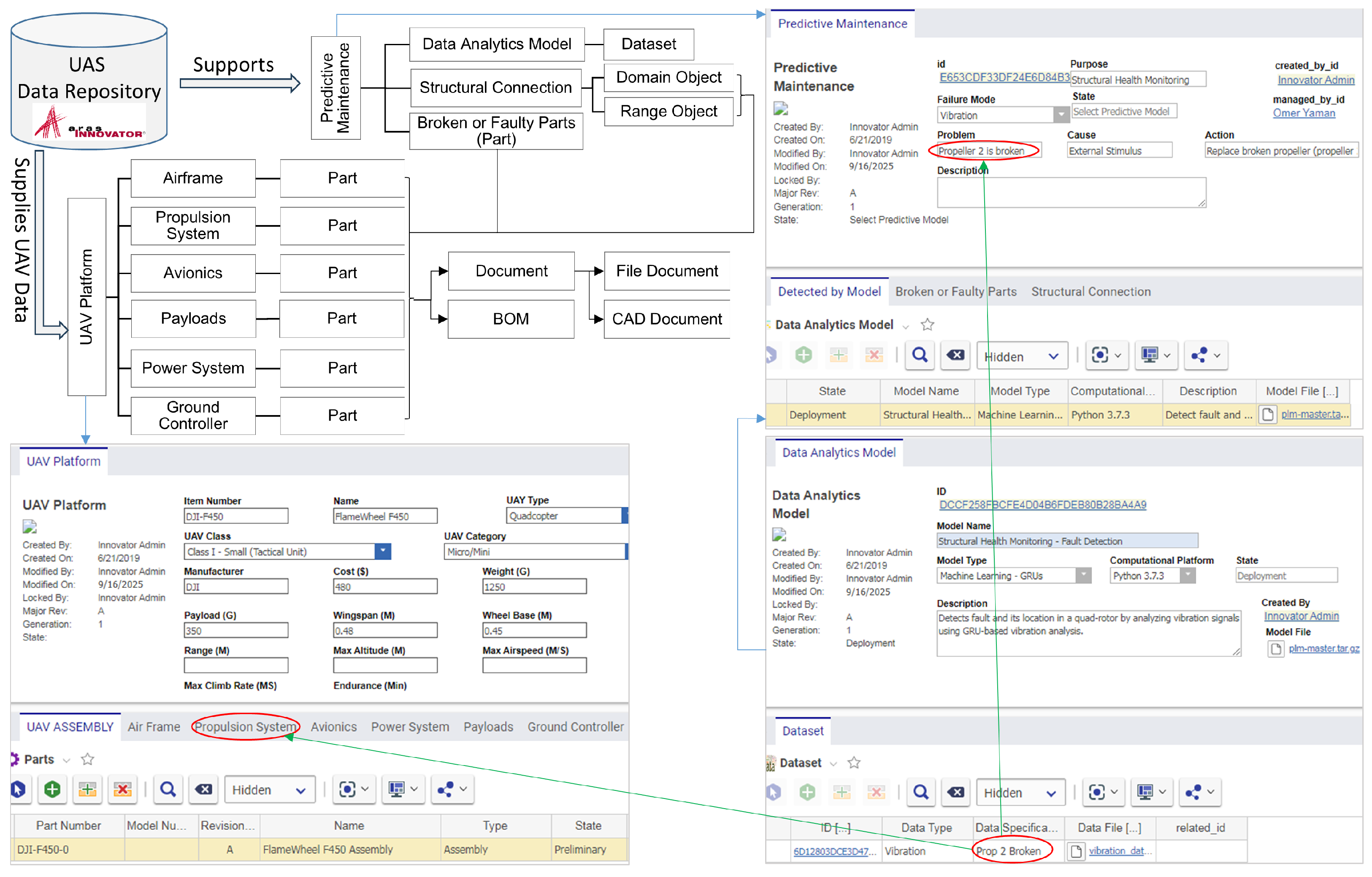 A custom-built UAV PLM repository, implemented using the Aras Innovator platform; and