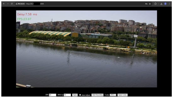 On the other side, the H.264 encoder was limited to 30 FPS, constrained by the Raspberry Pi’s processing capability. Compression efficiency was significantly higher, about 50% better than the JPEG compression, which was used in the MJPEG streaming, with average frame sizes between 15 and 18 KB. At equivalent bitrates, H.264 produced clearer and sharper video than MJPEG; however, it introduced 0.7–0.8 s of additional delay due to encoding and buffering. This made it less suitable for instant pilot feedback, but more suitable for scenarios requiring higher clarity or lower bandwidth consumption, such as post-flight analysis or when operating under constrained network conditions.