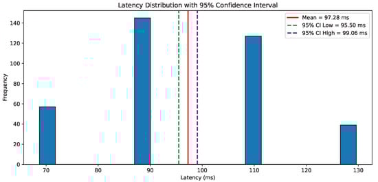 The distribution of the measured latency values is illustrated in Figure 6, which includes the 95% confidence interval to highlight the stability of the control channel.