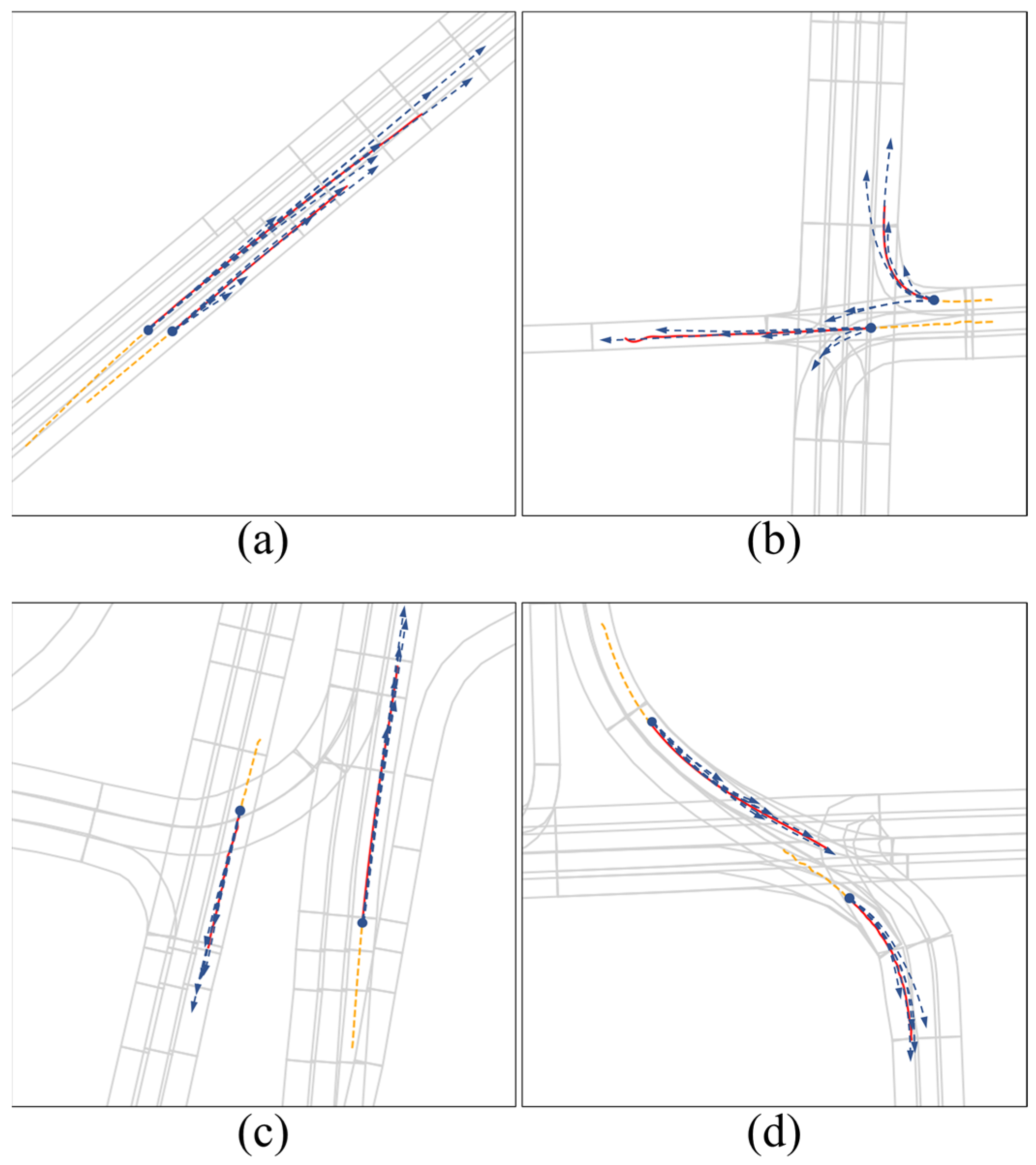 - Gao, J.; Sun, C.; Zhao, H.; Shen, Y.; Anguelov, D.; Li, C.; Schmid, C. Vectornet: Encoding hd maps and agent dynamics from vectorized representation. In Proceedings of the IEEE/CVF Conference on Computer Vision and Pattern Recognition, Seattle, WA, USA, 13–19 June 2020; pp. 11525–11533. [Google Scholar]