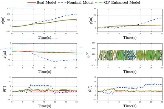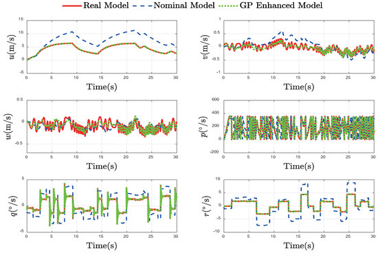 The performance of the trained GP in modeling the system dynamics, and the resulting improvement over the nominal model, are presented in Figure 4, Figure 5 and Figure 6.