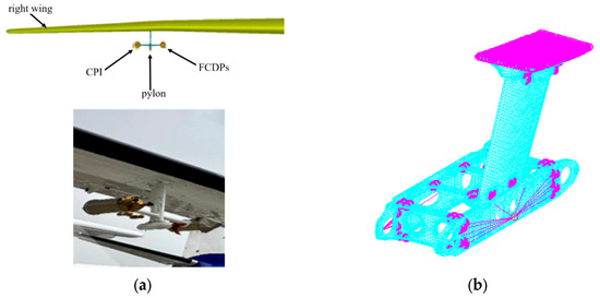 Wing pylon with FCDPs and CPI. (a) Structure of wing pylon; (b) finite element model.