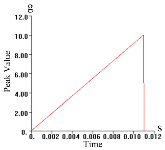 In order to make subsequent research and analysis on pylons and related structures more realistic and reflect their mechanical behavior and life characteristics under real impact loads, the impact load peak was eventually set to 10 g with a life analysis conclusion for similar models of pylons. The specific impact load peak is shown in Table 2, which provides clear and accurate data references for subsequent research efforts from a technical specification MIL-STD-810H “Environmental Engineering Considerations and Laboratory Tests” [23] issued by the US Department of Defense for the design and evaluation of aircraft structures.
