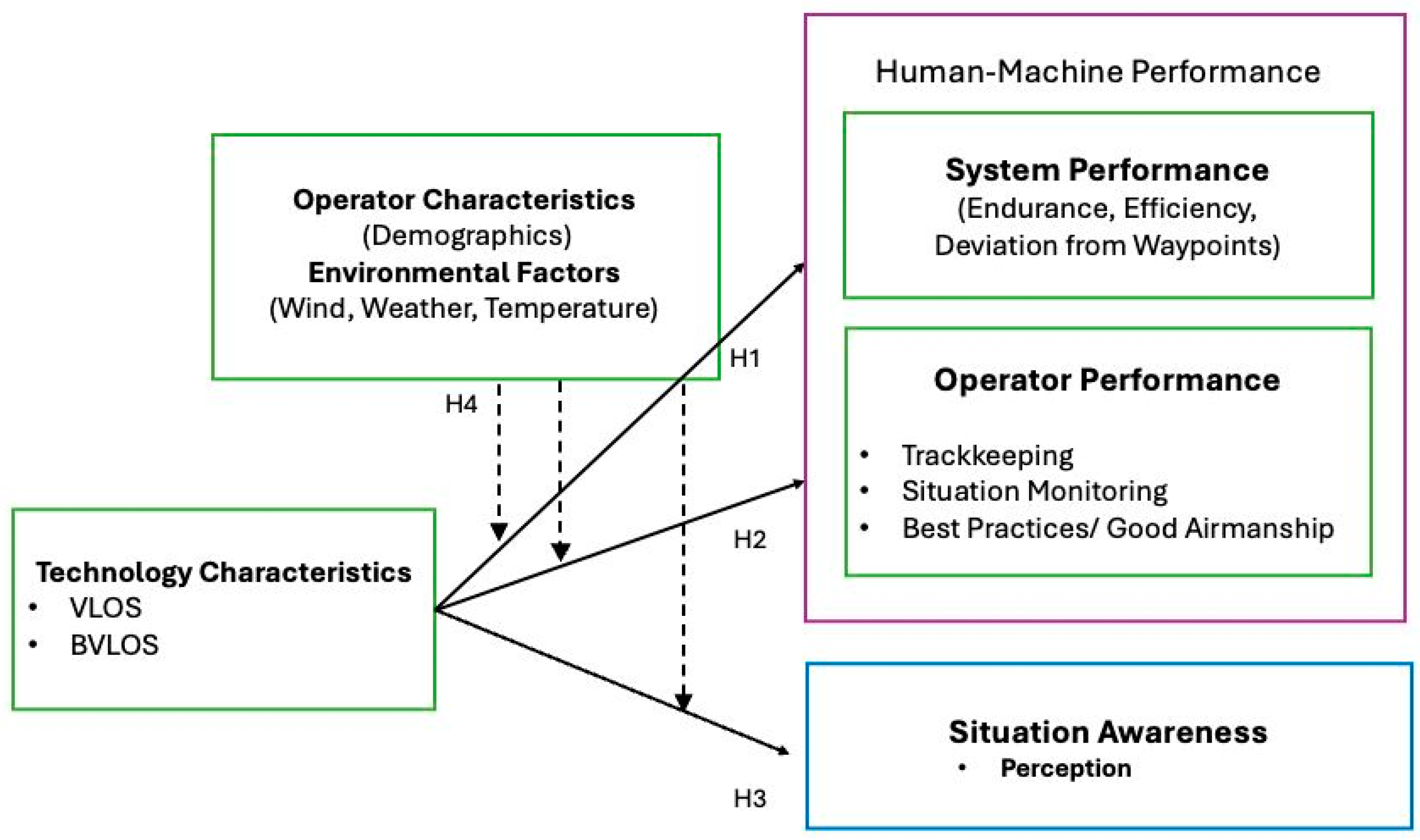 Environmental challenges have long plagued UAS operations, and unfavorable wind and weather have impacted UAS and operator performance. Operator demographics have also been shown to influence UAS [107] and operator [108] performance. Thus, H4 considers the impact of environmental and demographic factors on UAS and operator performance in a medical and humanitarian logistics setting.