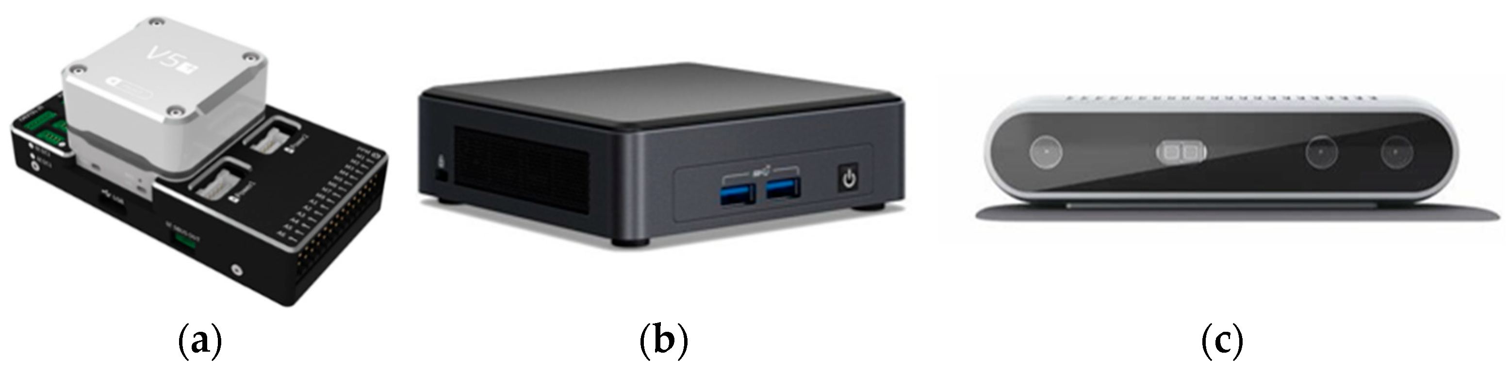 30], whereas a lightweight camera system (e.g., the Intel RealSense D435i from Intel Corporation, Santa Clara, CA, USA) often weighs less than 100 g and consumes under 3 W [