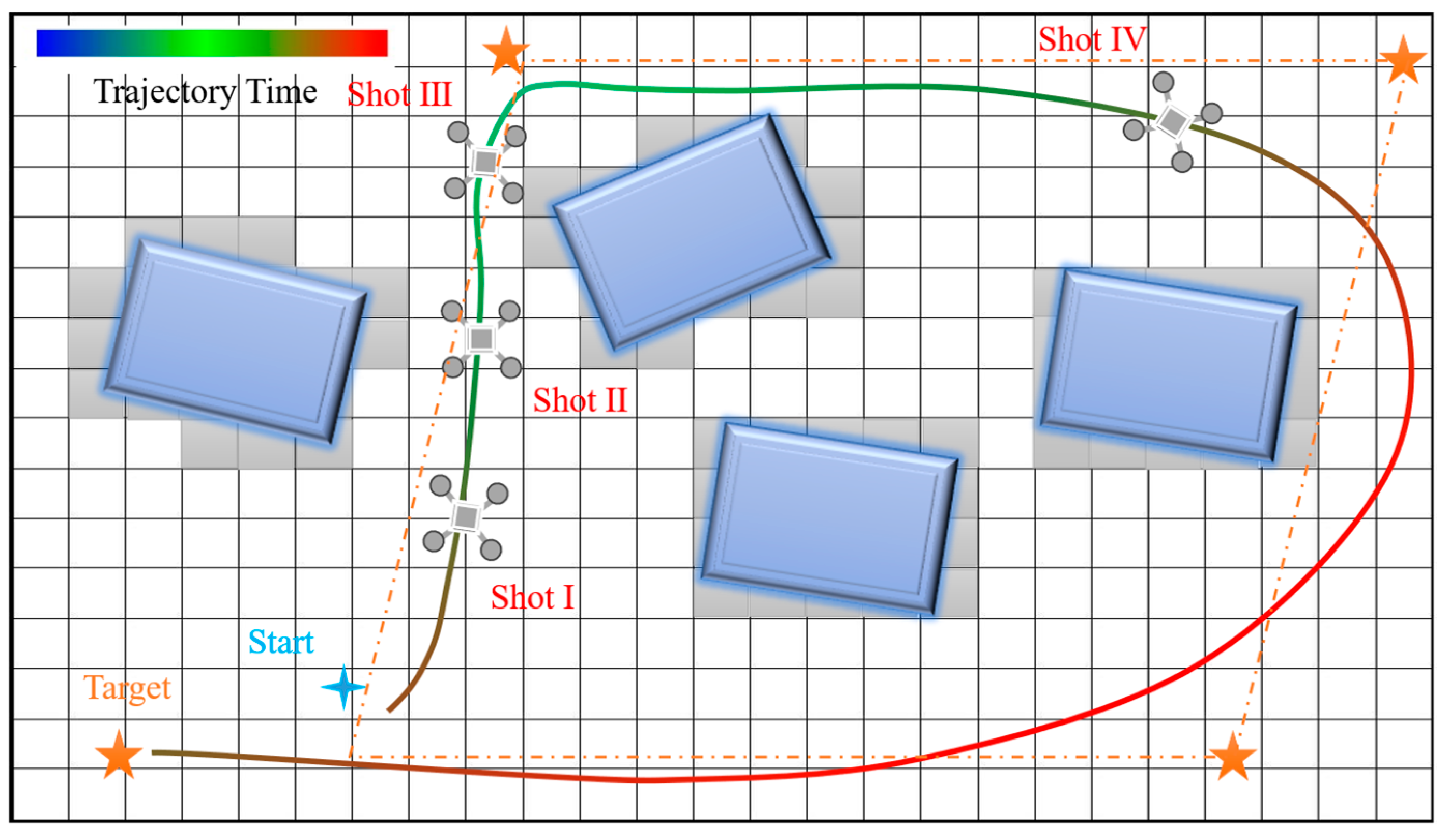 23]. For rotor-based unmanned aerial vehicles with non-trivial dynamics, generating trajectories directly in high-dimensional state space is time-consuming, whereas developing geometric paths and applying smoothing calculations is more efficient.