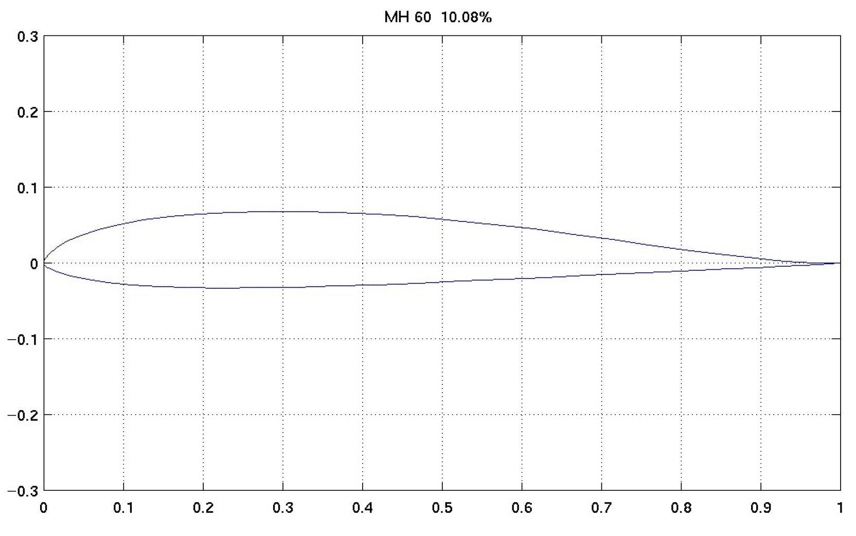| Airfoil | MH60 (≈10%) | Reflex, tailless use |