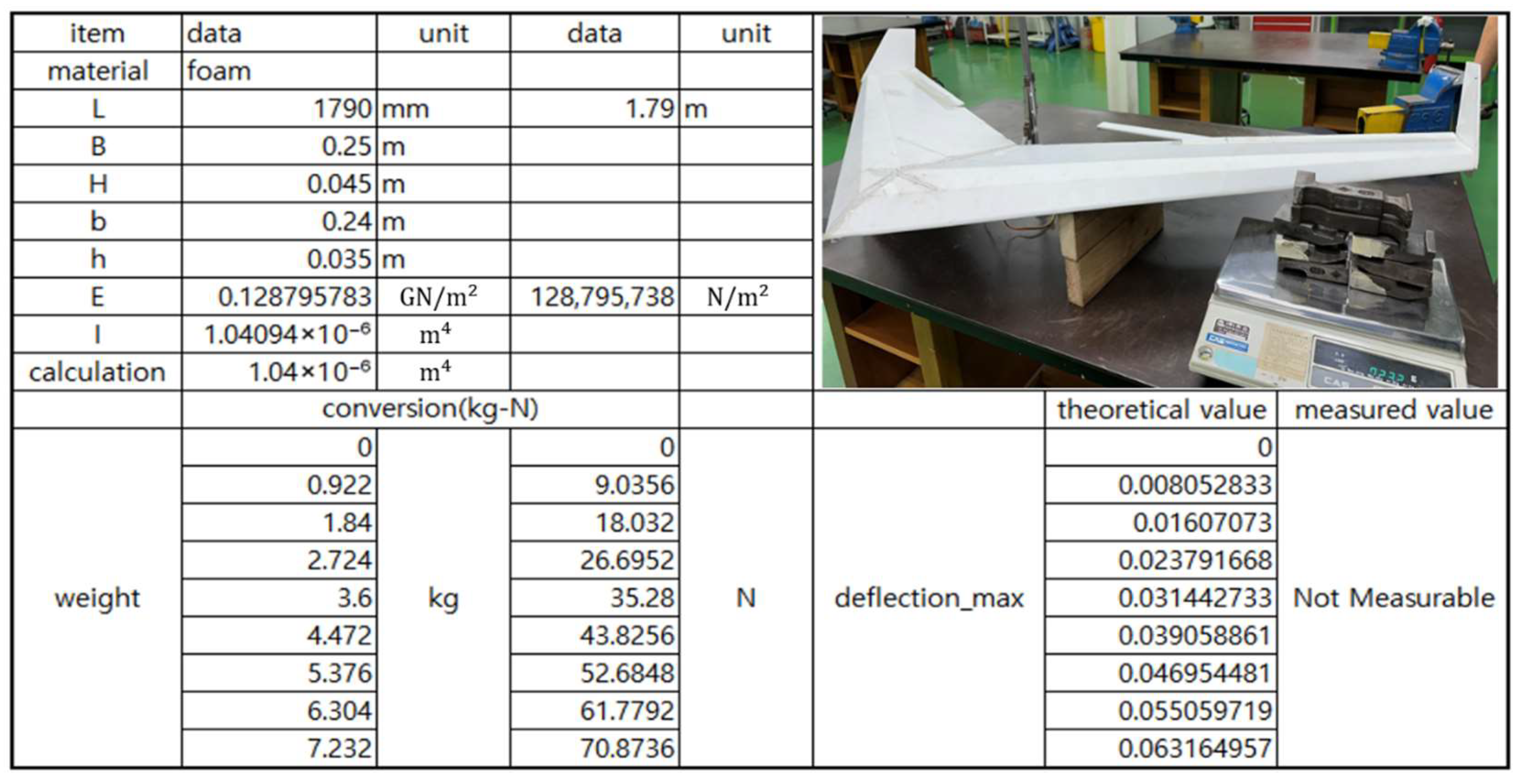 | Load (kg) | W (N) | Short Spar L = 0.53 | Full Span L = 1.79 |