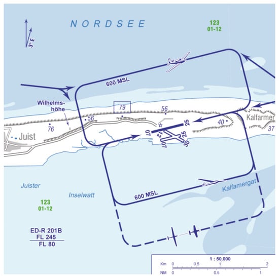 - DFS Deutsche Flugsicherung. Sichtflugkarte/Visual Operating Chart Juist EDWJ. Available online: https://aip.dfs.de/BasicVFR/ (accessed on 30 July 2025).