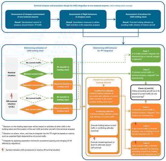 - Sievers, T.F.; Sakakeeny, J.; Idris, H.; Peinecke, N.; Bulusu, V.; Nagel, E.; Jack, D. A Concept for Procedural Terminal Area Airspace Integration of Large Uncrewed Aircraft Systems at Non-Towered Airports. In Proceedings of the First US-Europe Air Transportation Research & Development Symposium (ATRDS2025), Prague, Czech Republic, 24–27 June 2025. [Google Scholar] [CrossRef]