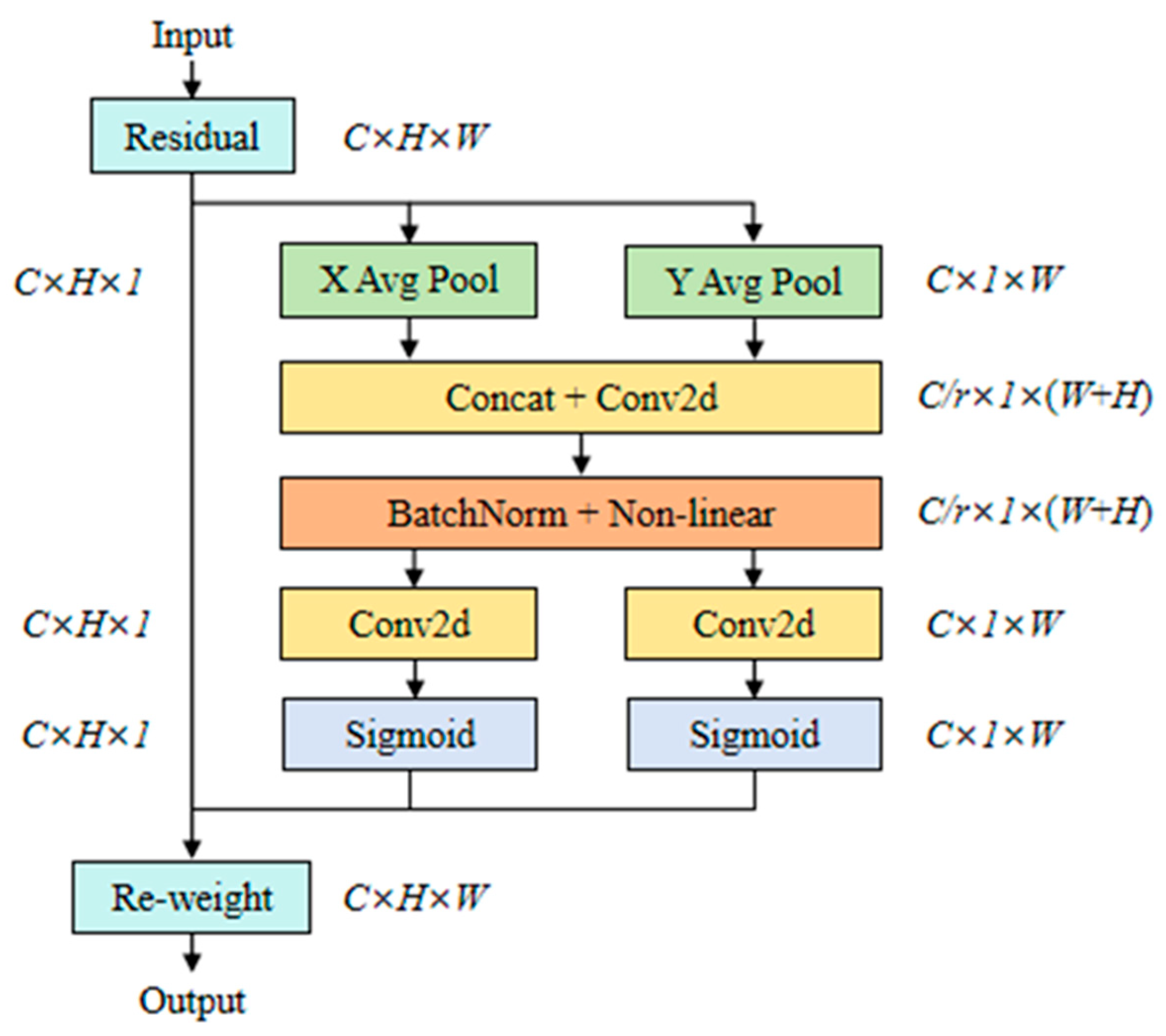 Figure 9. In this article, the symbols used in the network architecture are defined as follows: C denotes the number of channels in the feature map, H and W denote the height and width, respectively, and r denotes the channel reduction ratio used to control the compression of feature dimensions in the attention module.