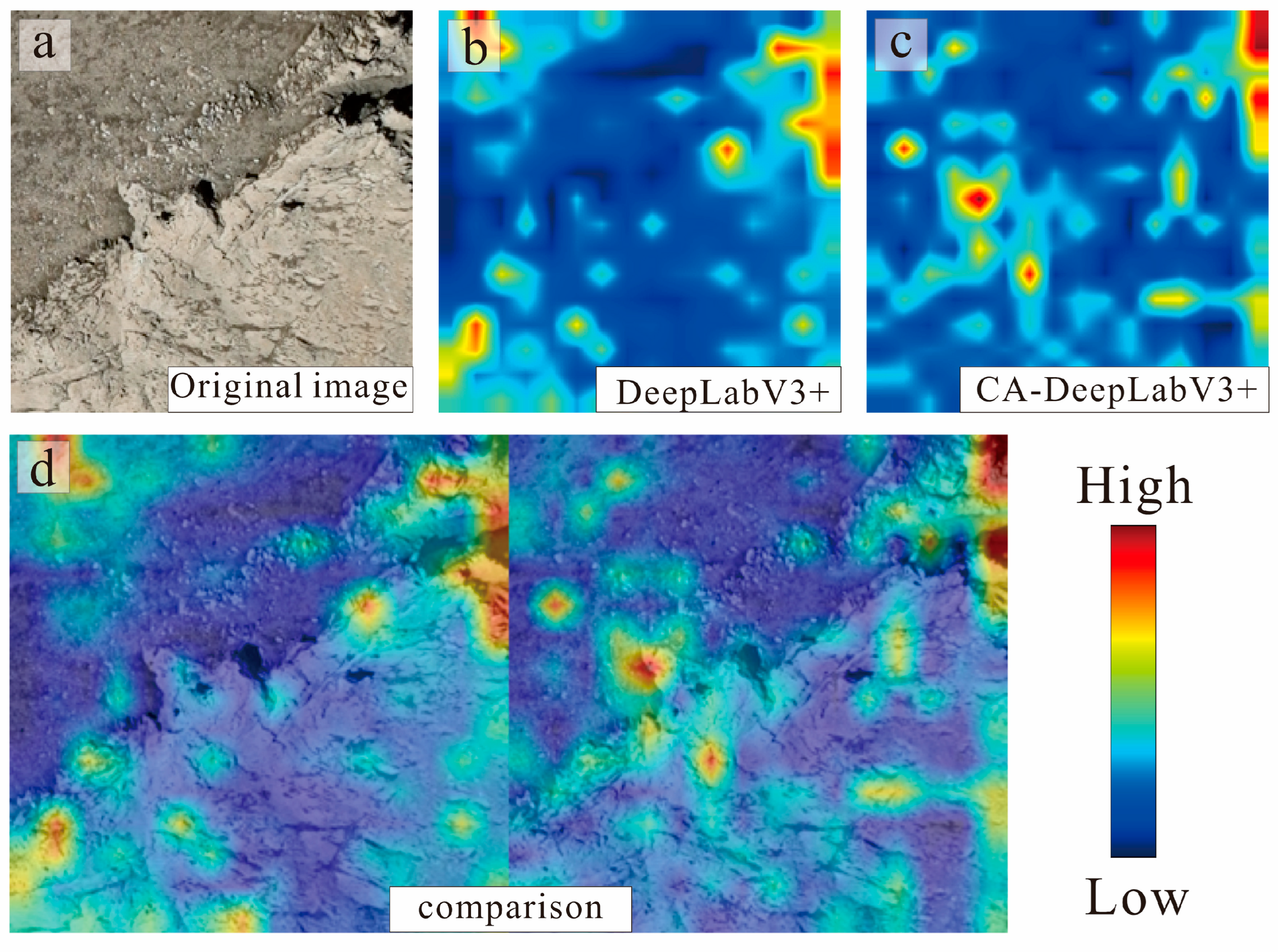 Figure 11). Furthermore, during high-resolution feature reconstruction, CA-DeepLabV3+ achieves enhanced edge preservation owing to its independent horizontal–vertical encoding mechanism, thereby improving the network’s spatial resolution awareness.