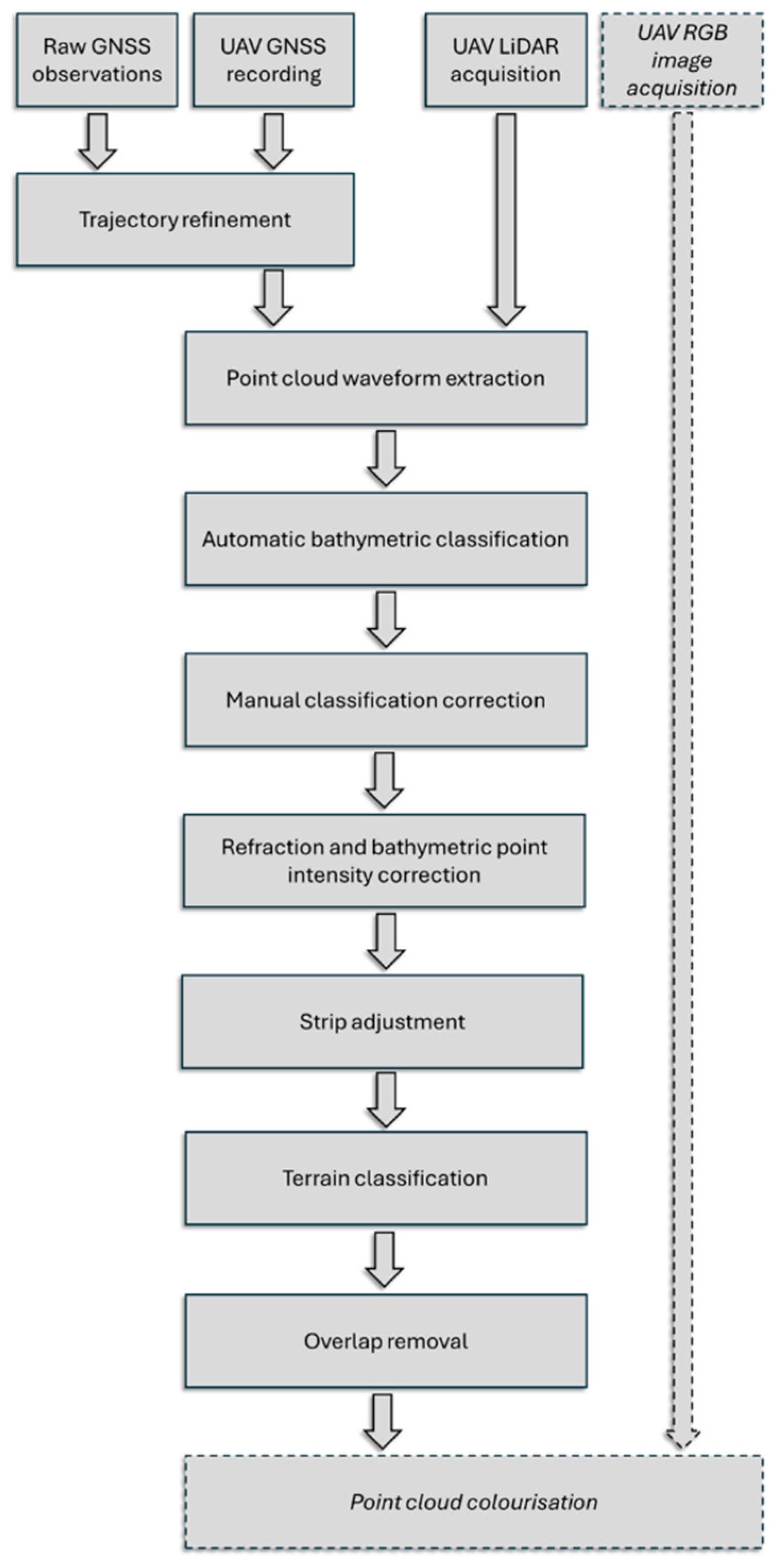 3.1. UAV Topo-Bathymetric LiDAR Data Acquisition