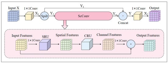 - Li, J.; Wen, Y.; He, L. Scconv: Spatial and channel reconstruction convolution for feature redundancy. In Proceedings of the IEEE/CVF Conference on Computer Vision and Pattern Recognition, Vancouver, BC, Canada, 17–24 June 2023; pp. 6153–6162. [Google Scholar]