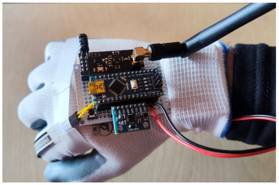 - One LiPo battery, 1200 mAh 7.2 V, whose capacity was chosen to ensure more than 10 h of the continuous Smart Glove v1.0 operation, has a longer operating time than the drone’s time of approximately 45 min.