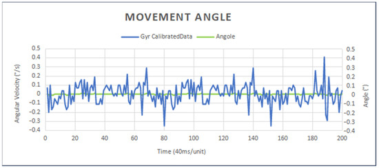 Movement angle calculated by gyroscope calibration data multiplied by time, with the gyroscope calibration data obtained by subtracting the average data from the raw data shown in Figure 6.