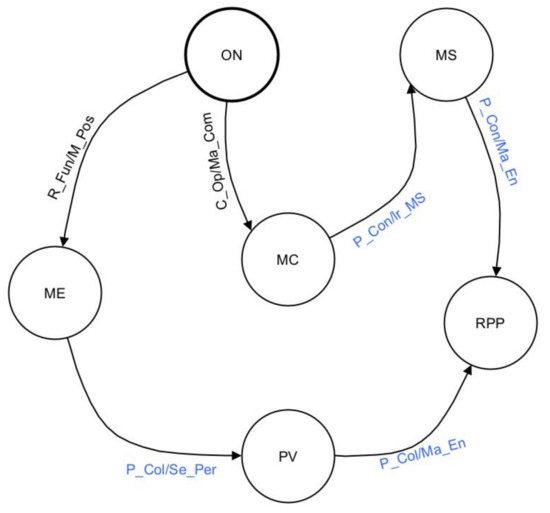 On the other hand, the creation of a safe mode operation state (MS) is considered for events involving loss of control (P_Con), with safe mode actions (Ir_MS) and a vehicle loss state (PV) for collision events (P_Col), and safety actions due to loss (Se_Per) of the formation, as shown in Figure 6.
