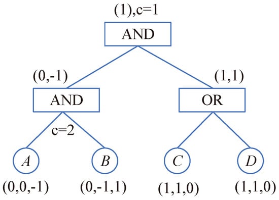The access tree can be marked using the above scheme. If the lengths of the marked vectors in the access tree are different, 0 is added to the end of the shorter vector so that they have the same length as the longest vector. The detailed results are shown in Figure 2.