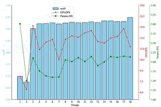 Figure 7. The mAP50, GFLOPs and parameters of ablation experiments.