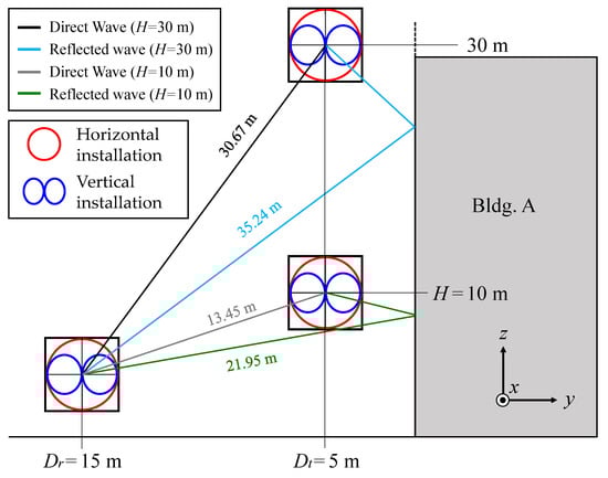| Distance between the nearest building and receiving antenna Dr | 5 m | 10 m | 15 m | |