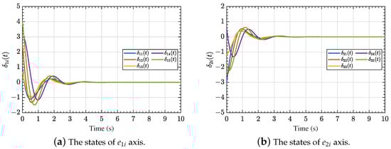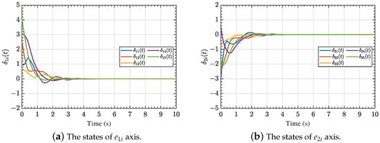 According to , V will converge to within a finite time. Consequently, , . Furthermore, letting , one has , . In summary of the aforementioned analysis, we have