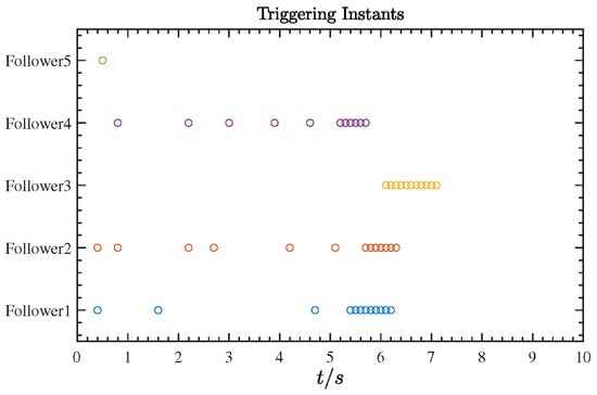 Triggering instants of each followers under the ET mechanism proposed by Xu et al. [22].