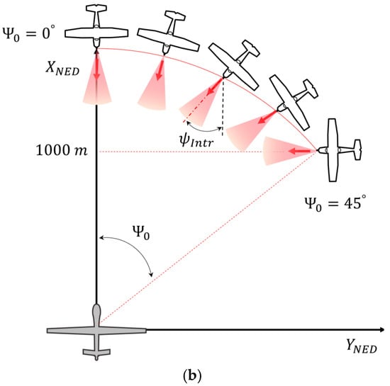 - The intruder aircraft maintains its original linear stationary flight course, flying wing leveled and at a constant speed. Several combinations of relative initial positions and relative speeds are evaluated.