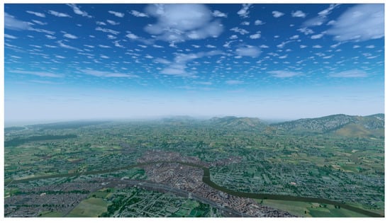 SAA camera viewpoint as rendered in Flight Gear (flying over the city of Pisa).