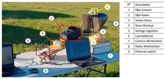 During the flight test, each sensor was recording on local storage the result of its own processing; moreover, a synchronization of the radar processor and VPU with the system time of the telemetry onboard the aircraft was implemented to guarantee the temporal alignment of data acquisition. Specifically, data acquired by each sensor during the test are summarized in Table 2.
