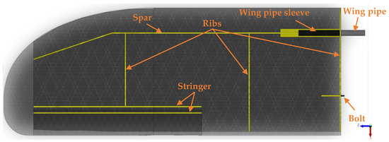 Internal elements of the UAV wing—spar, ribs, stringer, bolt, wing pipe sleeve, and wing pipe.