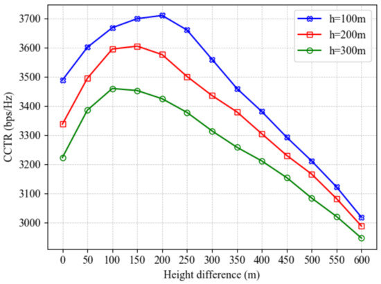 CCTR comparison of different A-UAV altitudes under varying height differences between W-UAV and A-UAV.
