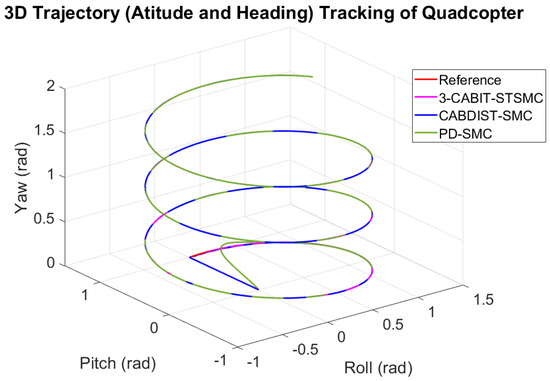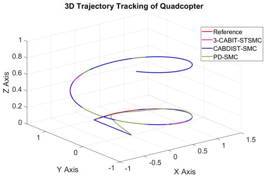 28], who introduced an adaptive proportional-integral-derivative-based SMC strategy to stabilize the attitude and position of quadrotor UAVs amid parameter uncertainties and external disturbances. Similarly, ref. [